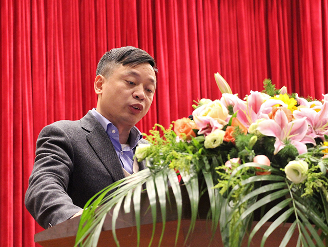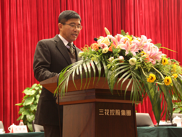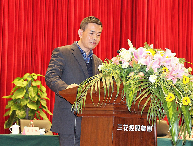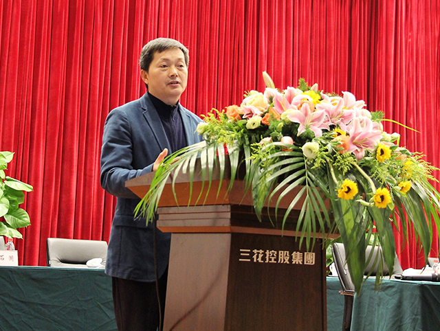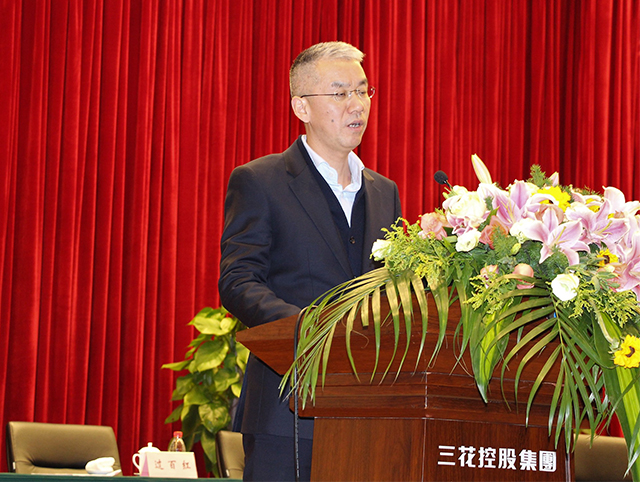 Leaders of Eight business units give a speech on annual meeting of Sanhua Holding Group.