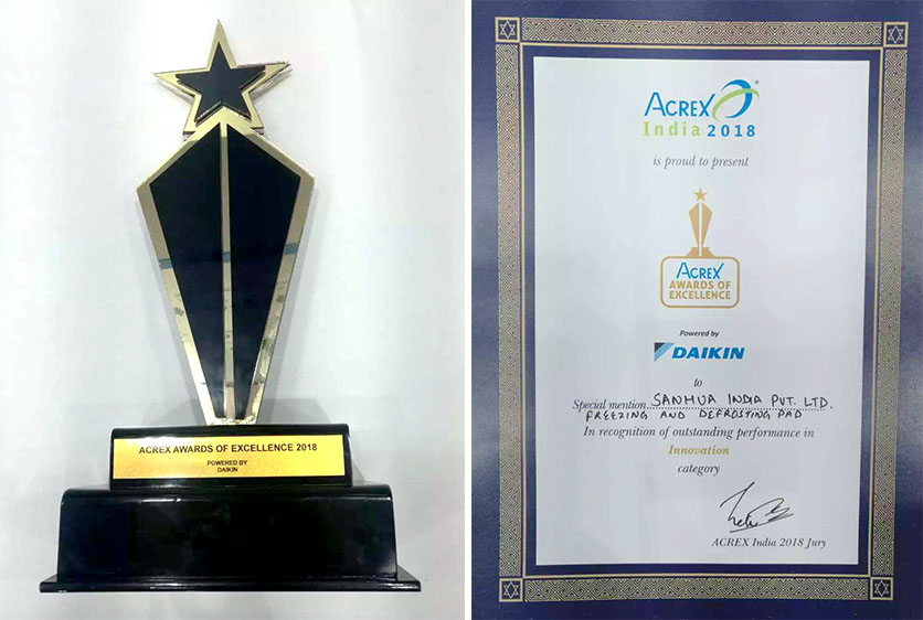 BANGALORE, India, Feb. 22, 2018--SANHUA Home Appliance Freezing and Defrosting Pad won ACREX Awards of Excellence 2018 because of its outstanding performance in innovation category, which is Sanhua Home Appliance another international big award after AWE Best Component Awards, RAC Cooling Industry Awards 2017, ACR News Awards 2018.